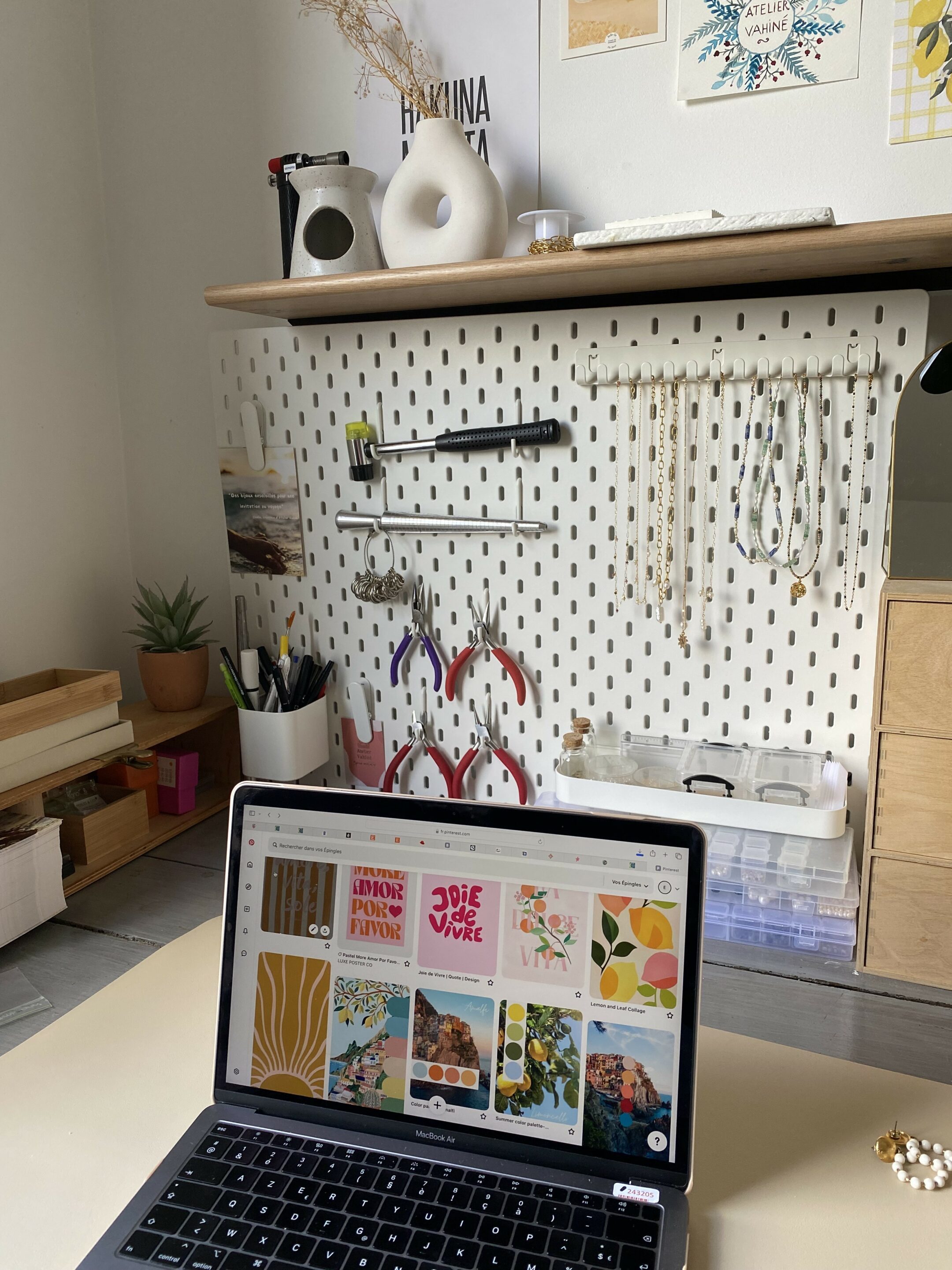 Ma journée type commence généralement par la création des commandes clients, c’est le moment où je me plonge pleinement dans la fabrication et le travail manuel. Ensuite, je consacre un peu de temps à la création de contenus pour les réseaux sociaux, afin de partager les nouveautés et les coulisses de mon univers. J’aime aussi prendre des moments plus créatifs pour dessiner ou imaginer les futures collections, c’est une étape essentielle pour nourrir mon inspiration. Enfin, une grande partie de mes journées est également dédiée à la gestion administrative et au suivi de mes différents points de vente, notamment en préparant les réassorts et en assurant que tout soit bien organisé.