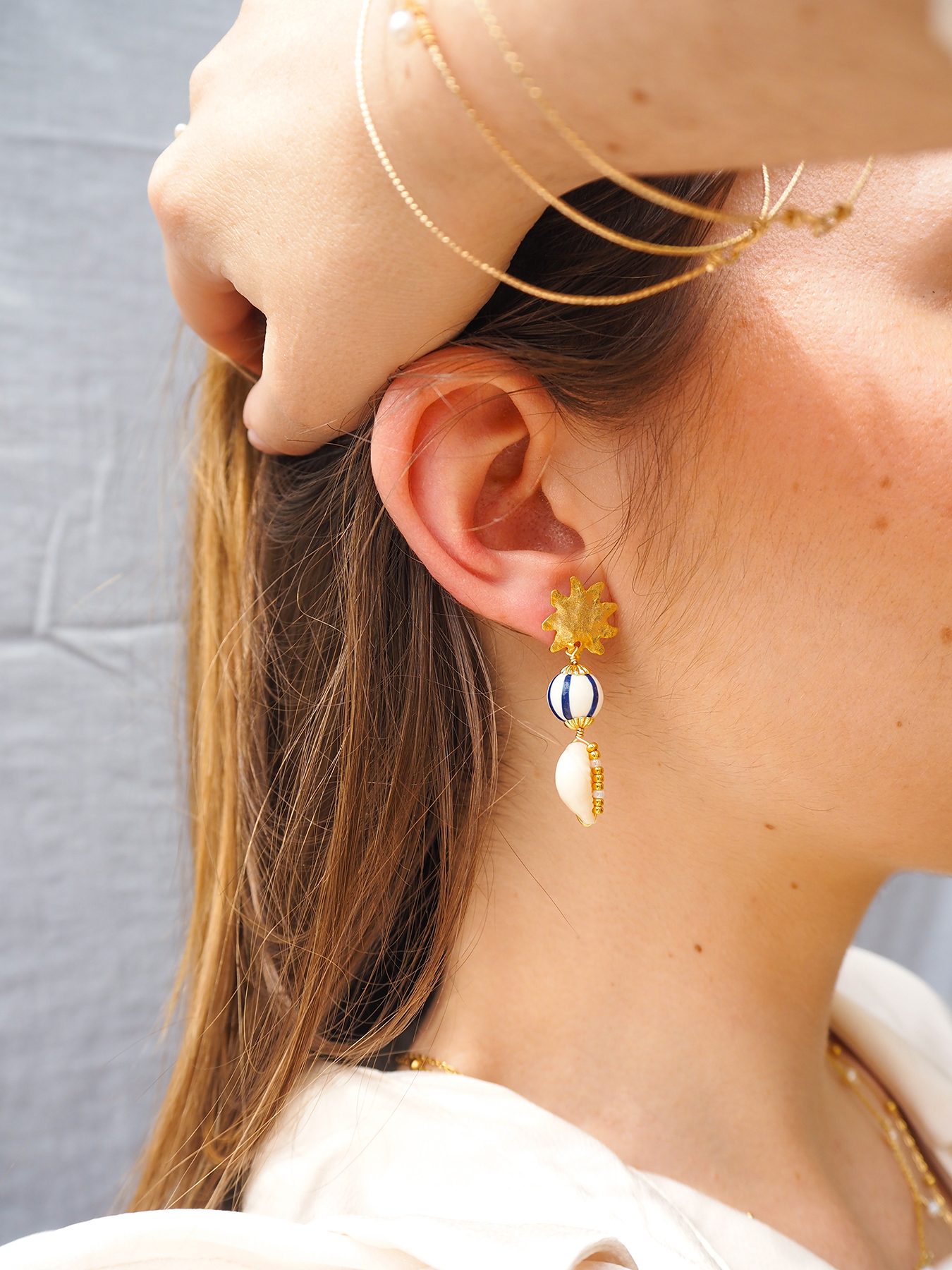 Je serais un bijou solaire et coloré, qui évoque la joie de vivre et les voyages, à la fois élégant et léger. Pour cela, je choisirai les boucles d’oreilles Hélios.