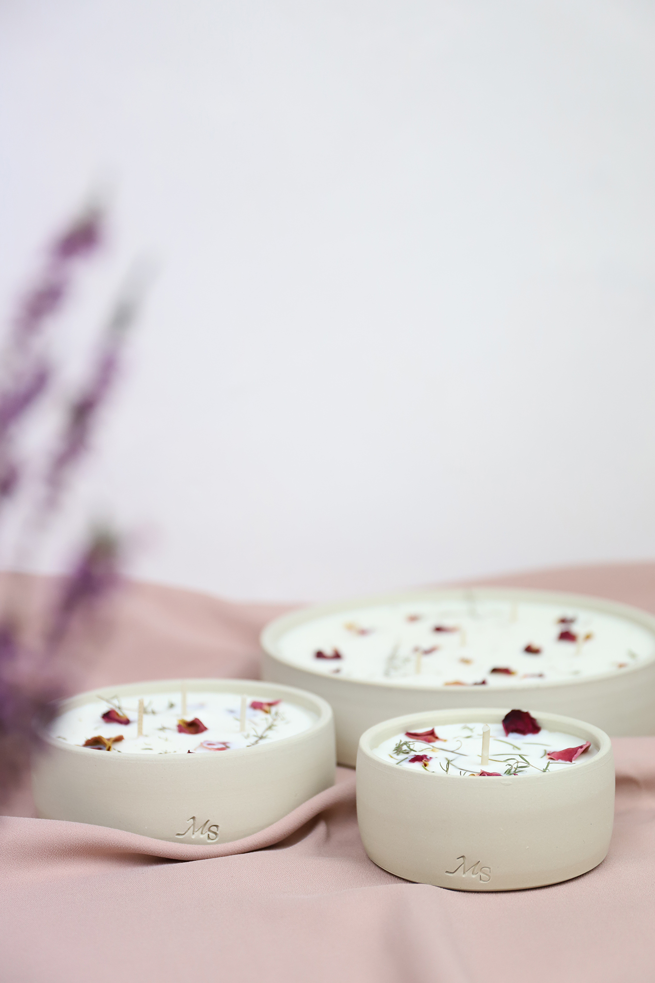 Nous adorons passer du temps à l’atelier, nous avons parfois l’impression d’être dans une cuisine ! La coulée est un moment apaisant, propice au podcast, et chaque fleur qui vient orner la cire est déposée avec délicatesse, il faut être très patient pour chaque partie de la conception des bougies.