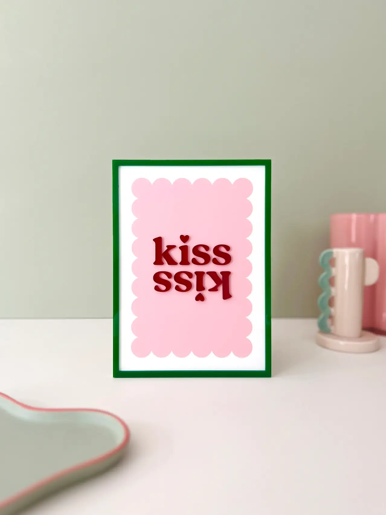 Affiche A5 – Kiss kiss est une sublime affiche avec son adorable message. Cette affiche en plexiglas mise sur des formes en 3D et colorées pour mettre en avant un message décalé et bienveillant. À offrir ou à s’offrir pour habiller n’importe quel mur.