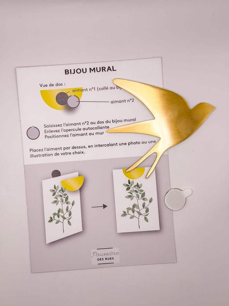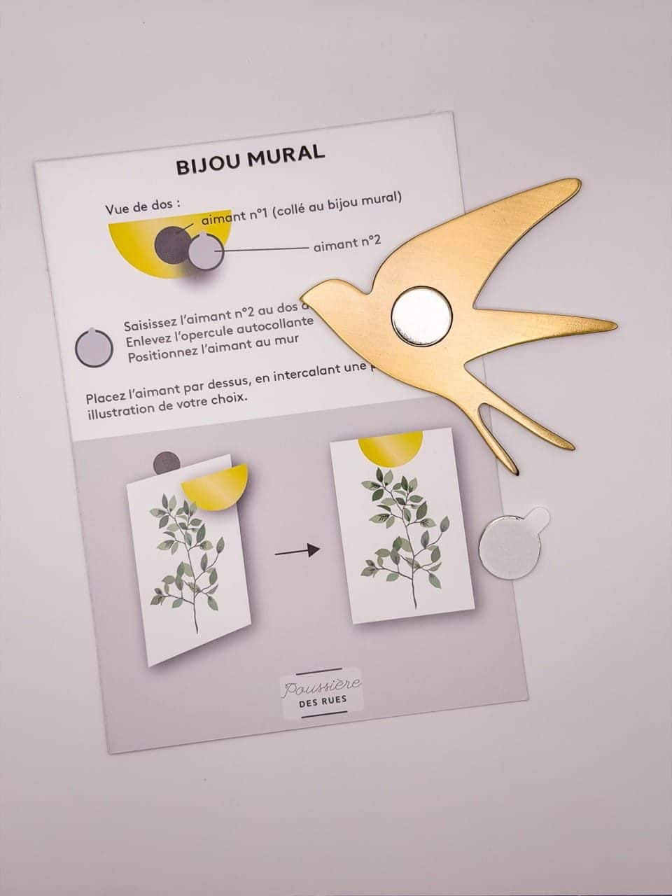 Ajoutez une touche d’élégance à votre intérieur avec ce Bijou mural Grande Hirondelle 1 en métal doré ! Facile à installer grâce à son système d’aimants, il se fixe sur tous vos murs. Parfait en déco minimaliste ou pour afficher vos cartes et photos préférées, il combine praticité et raffinement.