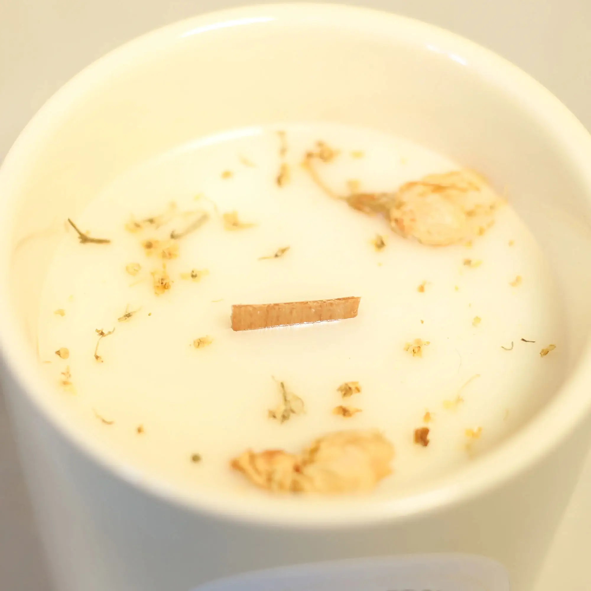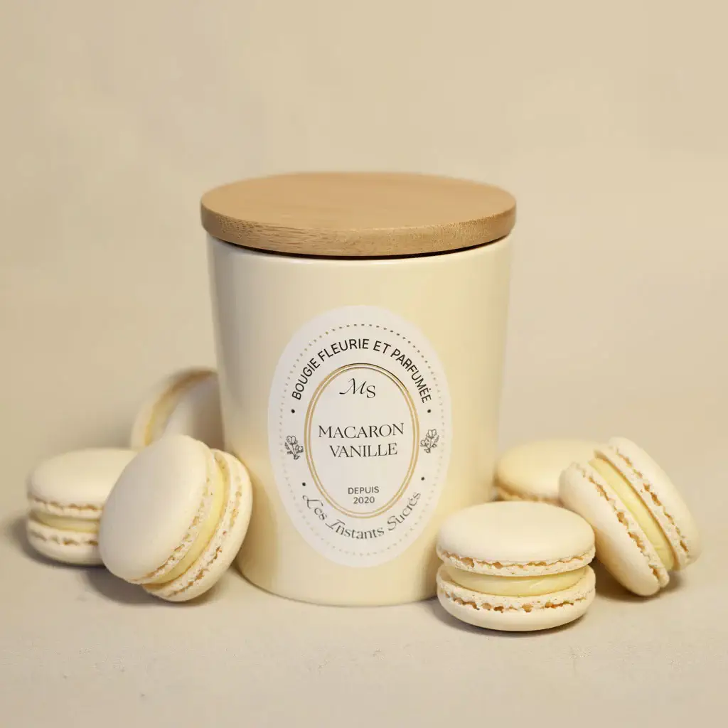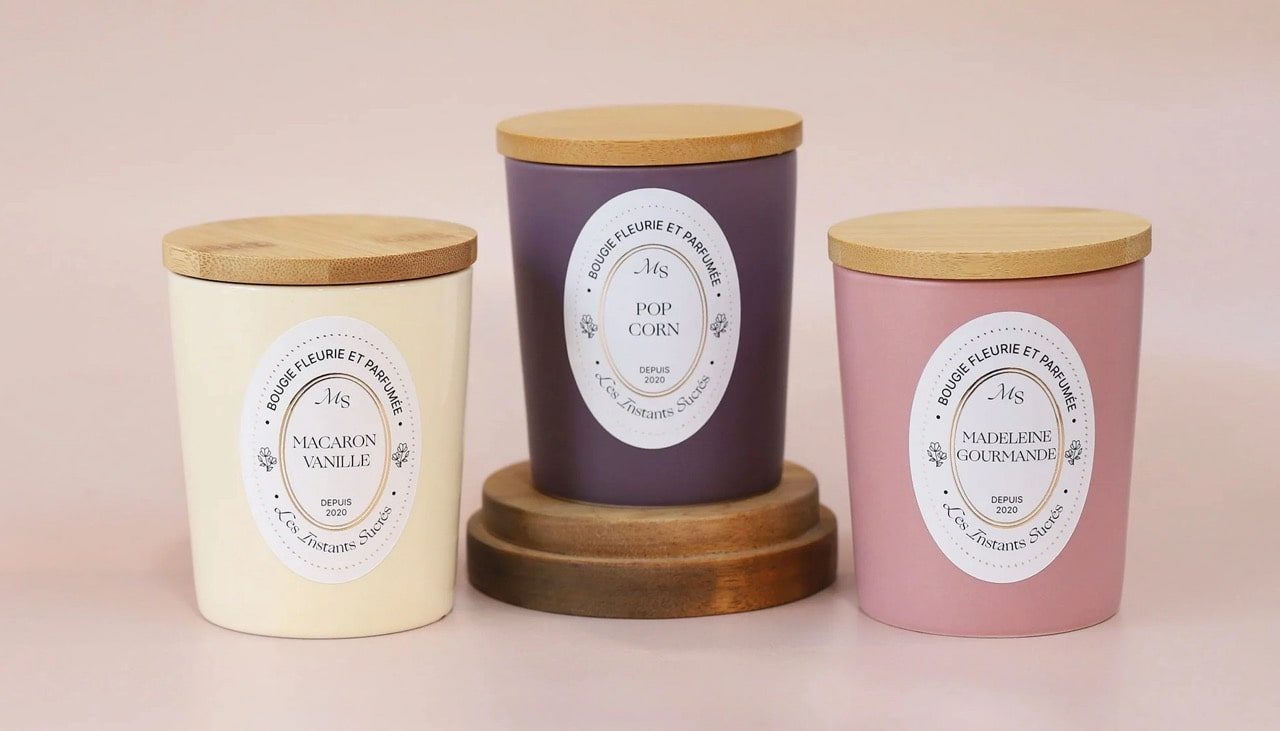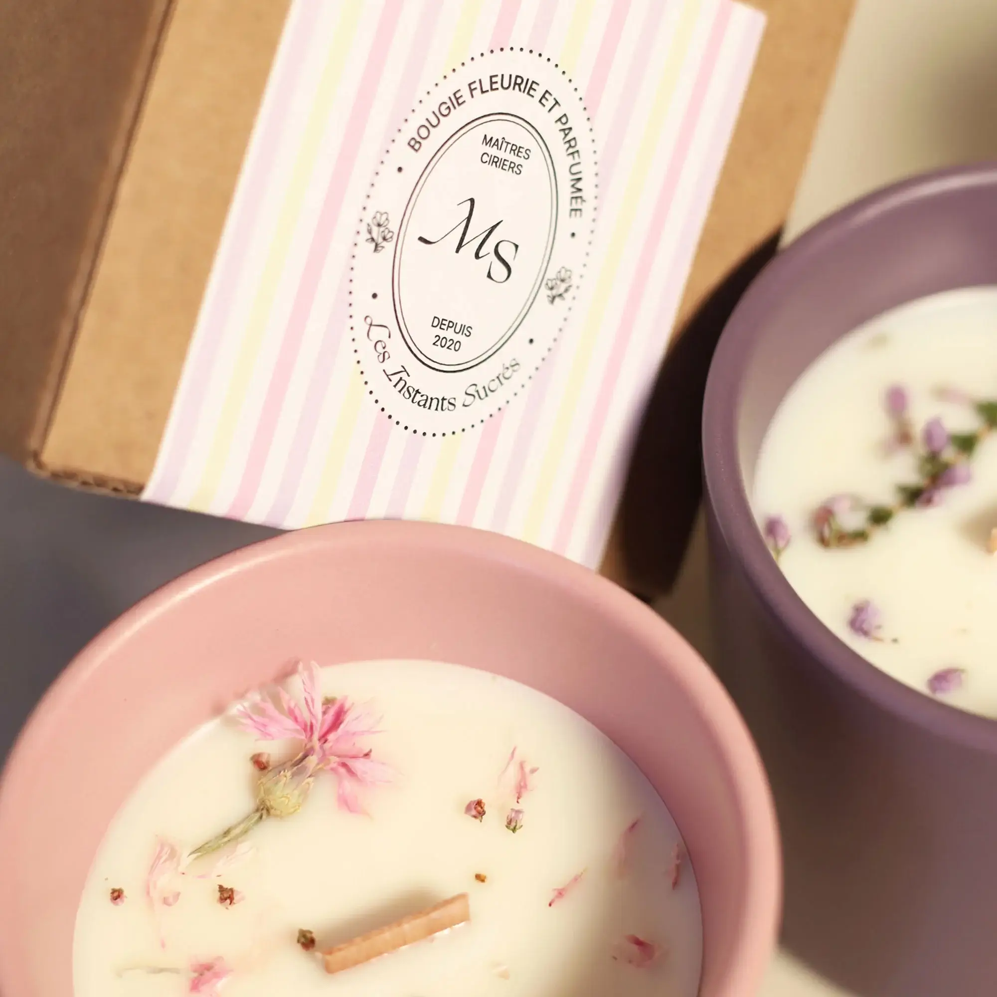 La collection Bougies – Instants sucrés vous plonge dans l’ambiance chaleureuse et gourmande d’une pâtisserie authentique. Trois créations uniques réinterprètent les souvenirs de notre enfance et les plaisirs simples : la douceur de la madeleine, la délicatesse sucrée du macaron à la vanille et la gourmandise du pop corn caramélisé. Chaque bougie se révèle dans un pot en céramique colorée, décorée de fleurs séchées du jardin et animée par une mèche en bois de hêtre qui crépite doucement.