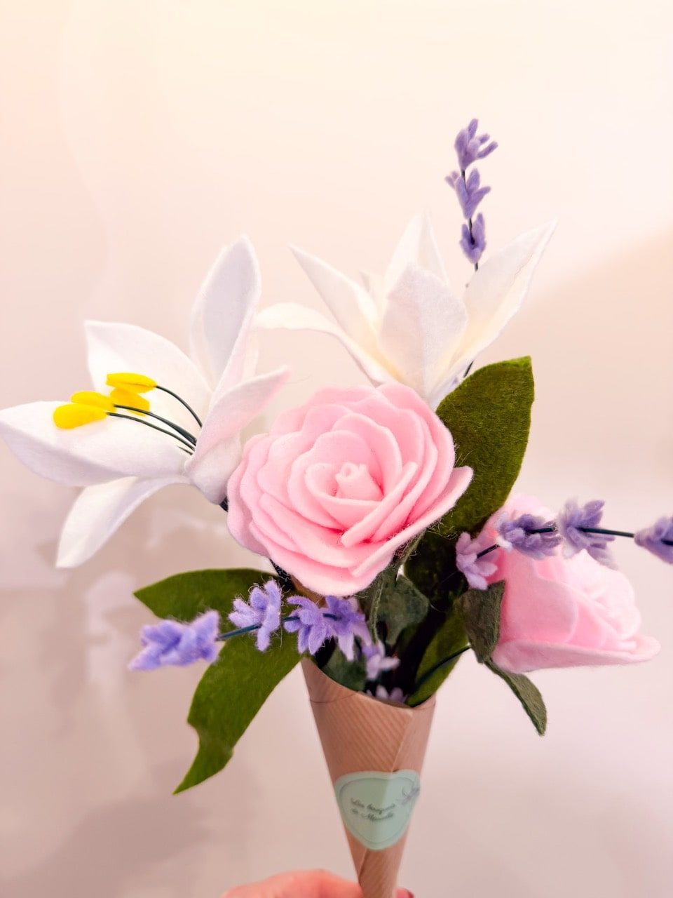 Si vous aimez ce Bouquet feutrine – Rose et violet, n’hésitez pas à découvrir les autres créations de Marielle juste ici.