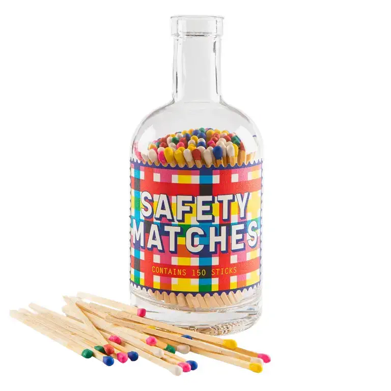 Vous avez entendu parler de messages et de bateaux dans des bouteilles ? Maintenant, laissez-nous vous présenter la bouteille d’allumettes ! Remplie de 125 allumettes colorées, il suffit d’en sortir une et de la frotter sur la base de la bouteille. À la fois décoratives et pratiques, elles sont parfaites sur une étagère de cuisine, un rebord de salle de bain ou à côté de votre bougie préférée. Un peu de magie quotidienne, prête à être allumée.