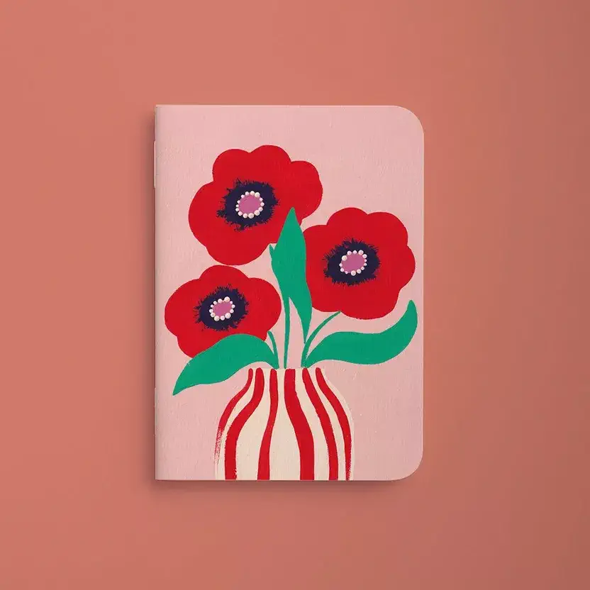 Un carnet délicat et lumineux, illustré d’un bouquet de coquelicots rouges dans un vase graphique aux rayures vibrantes. Une création pleine de fraîcheur et de poésie, où les formes simples et les couleurs franches apportent une touche joyeuse et apaisante au quotidien.