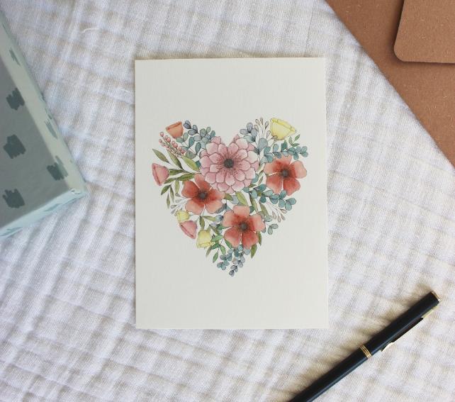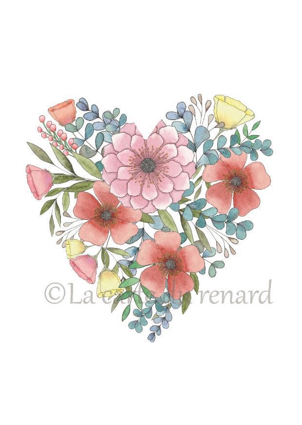 Carte Coeur Lili est une carte postale / décoration murale illustrée à partir d’une aquarelle. Toutes les aquarelles sont réalisées par Marion, la créatrice de la carte du Renard. Les motifs sont réalisés à l’aquarelle puis numérisés et imprimés sur un papier 300g/m², légèrement texturé, verso inscriptible.
