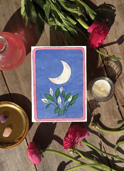 Carte Tarot lune est une carte postale / décoration murale illustrée à partir d’une aquarelle. Toutes les aquarelles sont réalisées par Marion, la créatrice de la carte du Renard. Les motifs sont réalisés à l’aquarelle puis numérisés et imprimés sur un papier 300g/m², légèrement texturé, verso inscriptible.