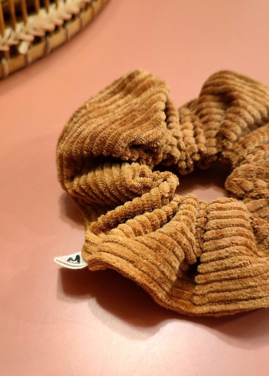 Chouchou velours côtelé camel