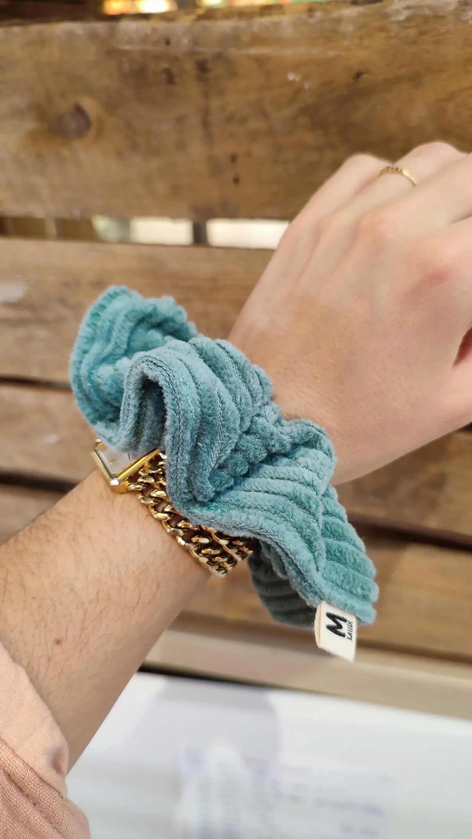Chouchou velours côtelé turquoise est un chouchou fait main avec beaucoup d’amour en France par la talentueuse créatrice Mraude Studio. Il est tellement beau que vous aurez envie de le porter dans vos cheveux, mais aussi au poignet, en guise de bracelet tendance.
