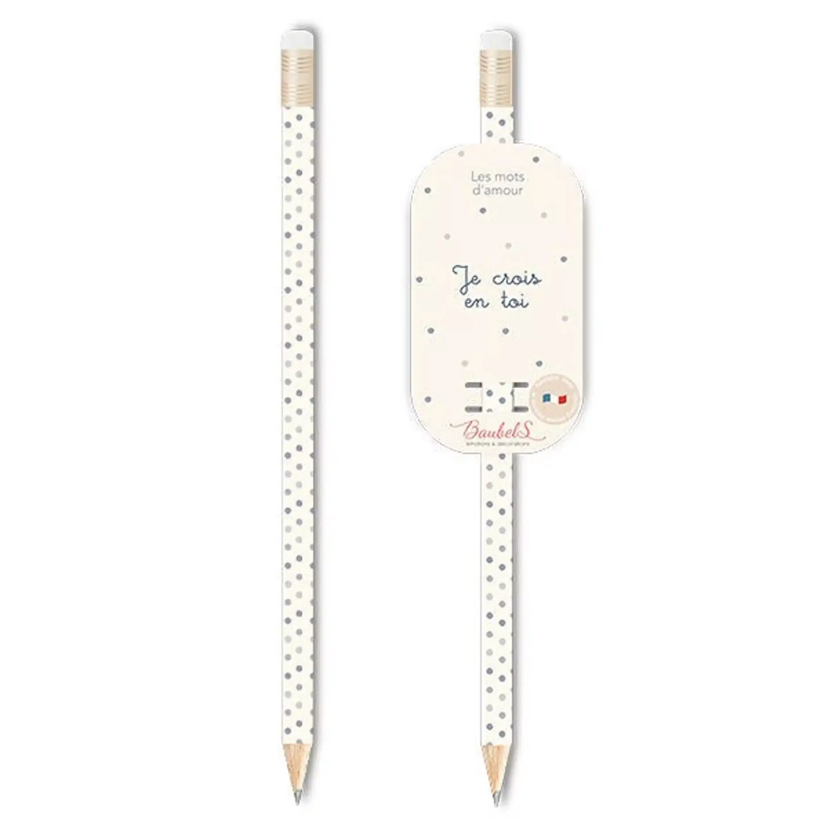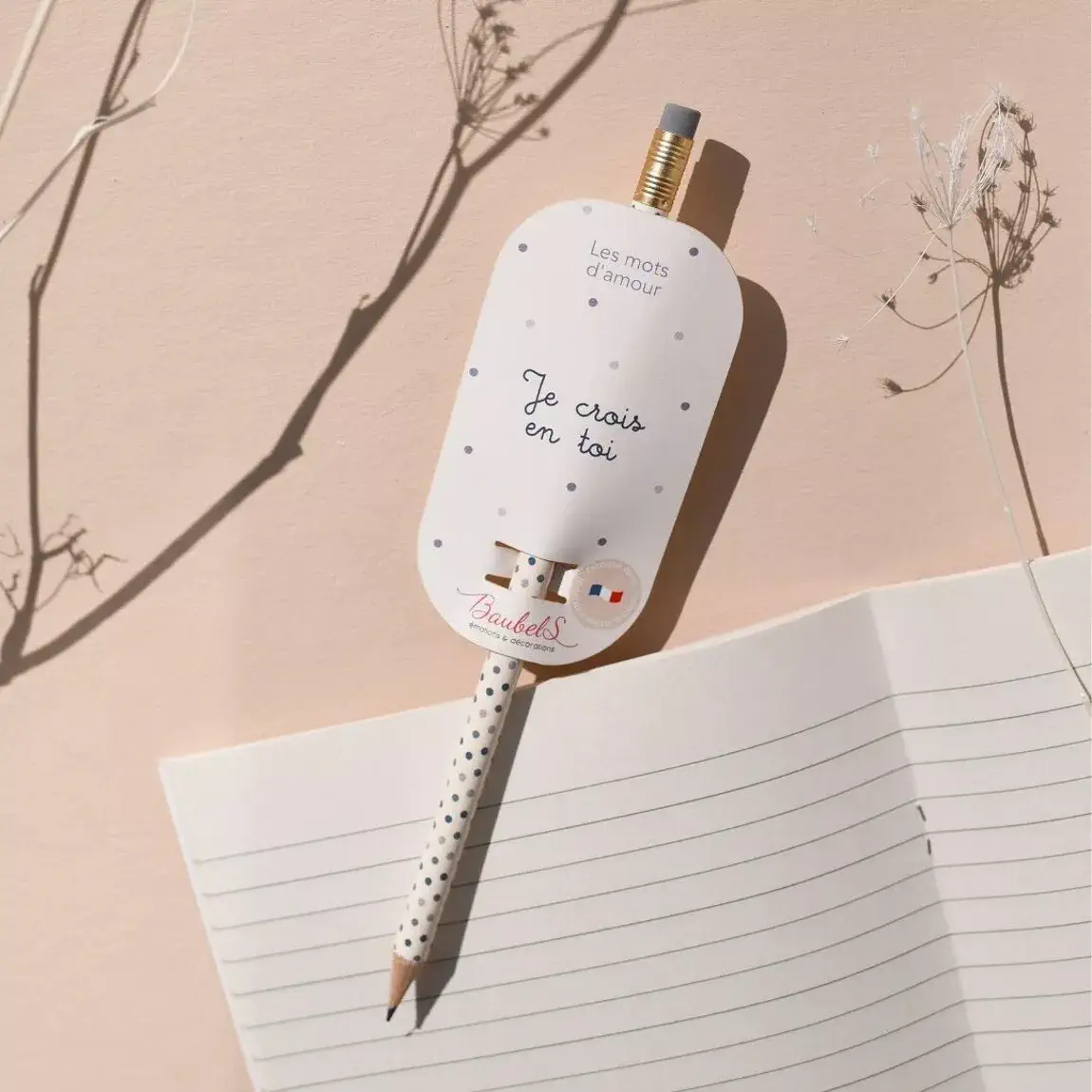 Fabriqué en France avec soin, ce crayon papier – “Je crois en toi” allie qualité et durabilité. Ce crayon Baubels reflète une fabrication locale et responsable, en cohérence avec des valeurs éthiques.