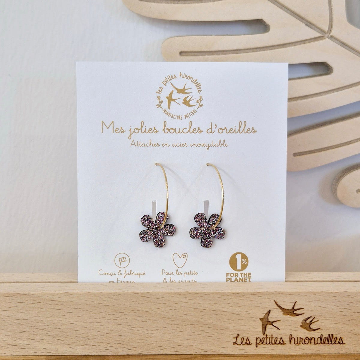 Ajoutez une touche de paillettes à votre tenue avec les Créoles – Fleurs, soigneusement dessinée et fabriquée en France ! Ces boucles d’oreilles écoresponsable, créées par Les Petites Hirondelles, incarnes la poésie et la délicatesse, apportant une étincelle à votre style quotidien.