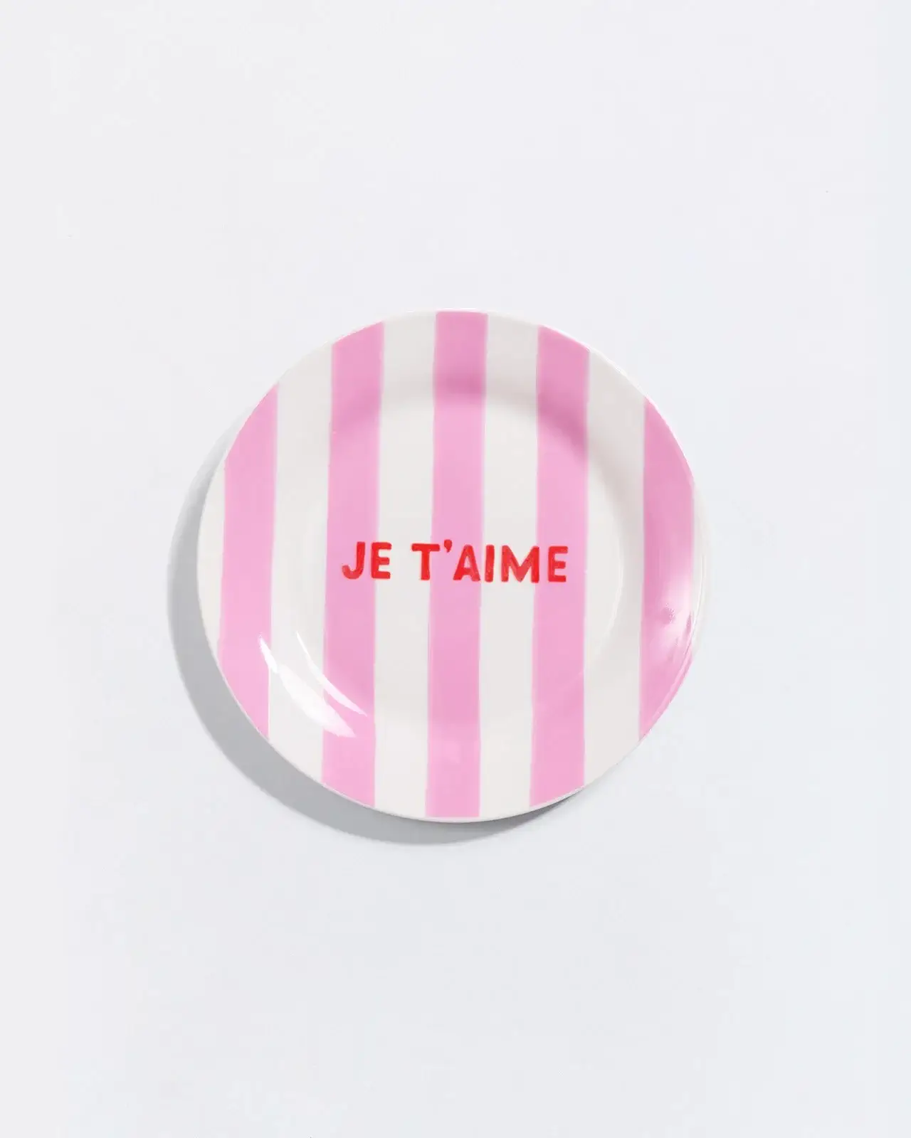 L’assiette – Je t’aime fait parti d’un collection d’assiettes rayées en porcelaine. Elles sont d’un diamètre de 19 cm. Avec leur message mignon et original, ces assiettes sont une vague de douceur sur toute la ligne. Idéales pour associer, mix & matcher, créer des paires, dépareiller, s’amuser… à vous de jouer !