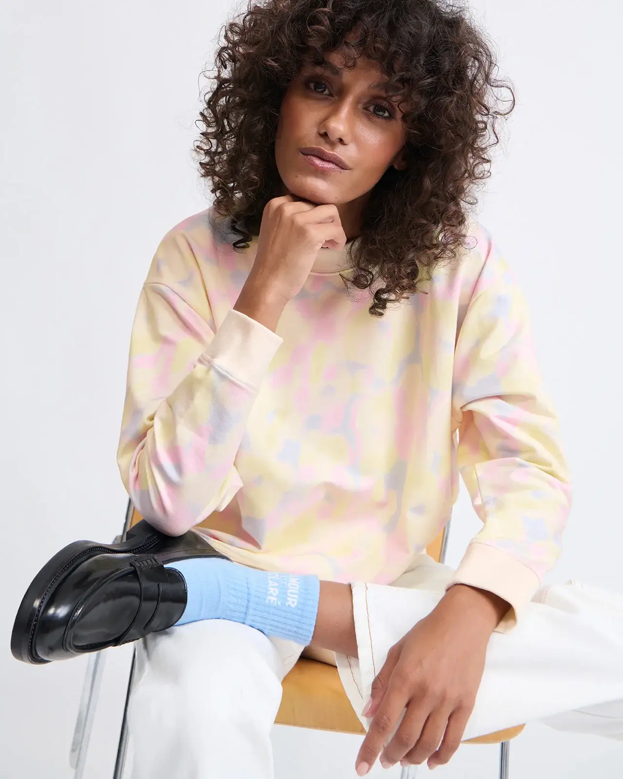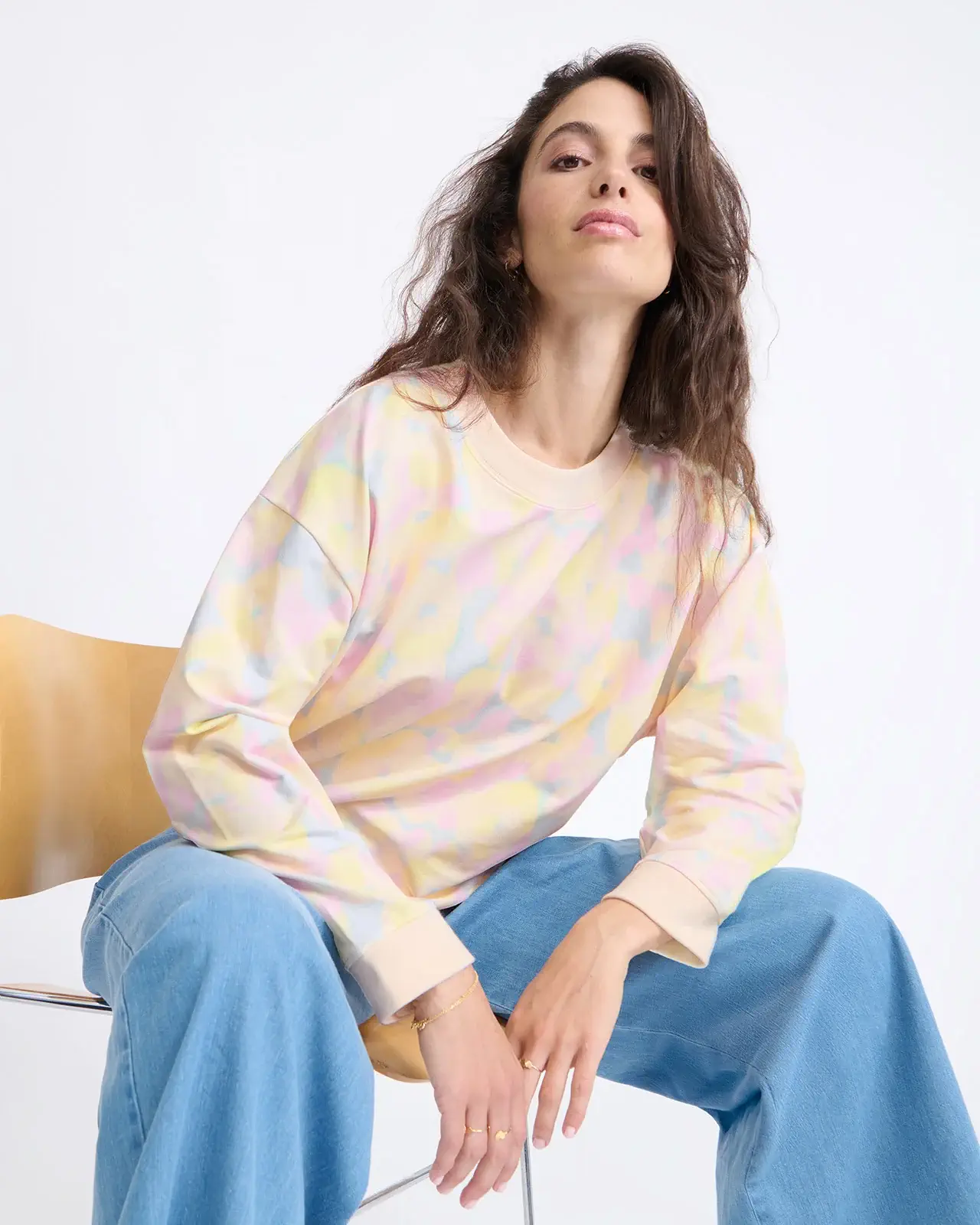 Le sweat Scarlett – Dream flowers, couleurs douces et lumineuses, fleurs évanescentes… Vous ne rêvez pas, cet imprimé est encore plus beau en vrai.