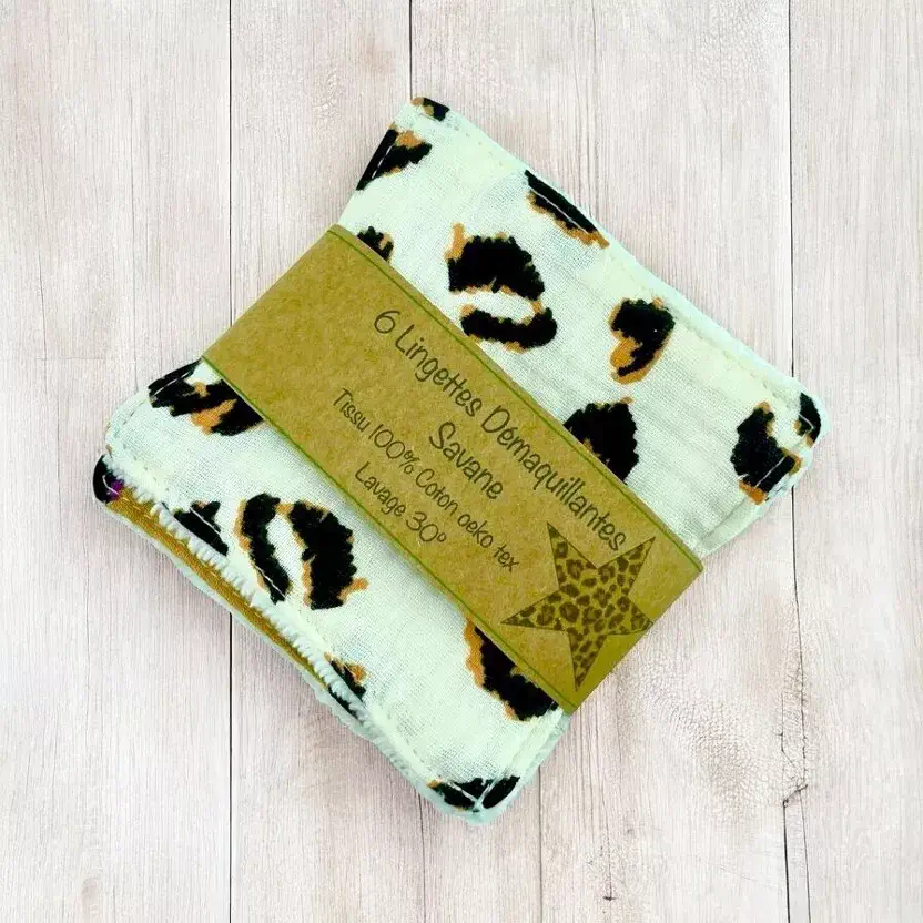 Les lingettes démaquillantes – Léopard associent tissu et éponge de bambou, réputée pour sa douceur. En prenant soin de lui, il prend soin de vous : il conserve sa couleur et sa douceur lavage après lavage. Les 6 lingettes sont l’accessoire incontournable, elle nettoie donc efficacement votre visage comme l’ensemble de votre corps, en respectant la peau des grands comme des petits.