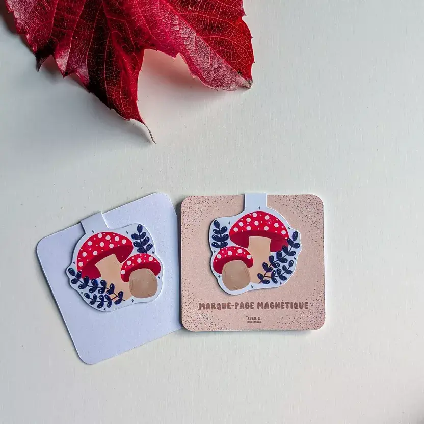 Ce marque-page magnétique – Champignons met en avant des champignons mignons dans les teintes chaudes de l’automne. C’est une véritable touche de couleur dans vos lectures.