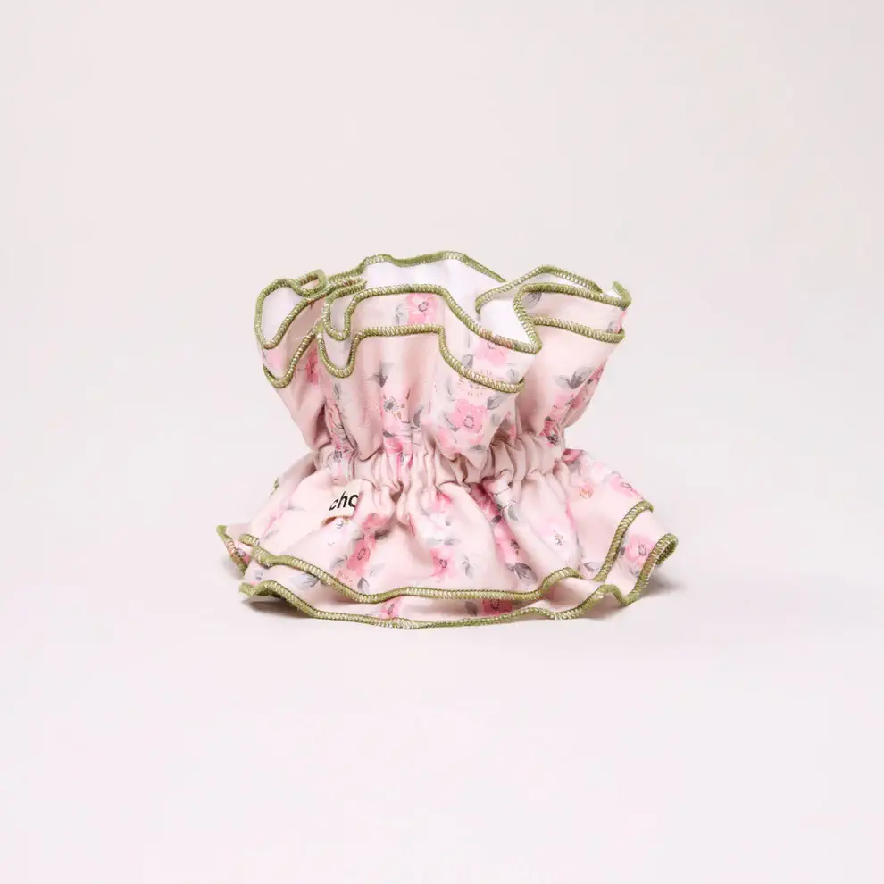 Maxi chouchou – Rose à fleurs est fabriqué en France à la main, à partir d’un magnifique tissu upcyclé. C’est un tissu en satin de coton doux, avec un motif fleuri délicat. C’est une pièce qui a du volume, idéale pour des cheveux moyens à épais.