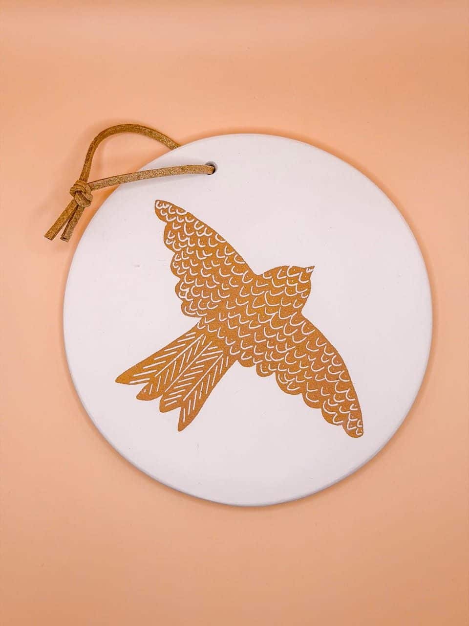Apportez une touche d’élégance à vos murs avec ce Médaillon 12 cm Oiseau bronze en plâtre de céramique. Il est délicatement sérigraphié à l’encre à l’eau dans un atelier lyonnais. Livré avec un cordon en cuir doré, il allie ainsi savoir-faire artisanal et fabrication française pour une décoration unique et raffinée.