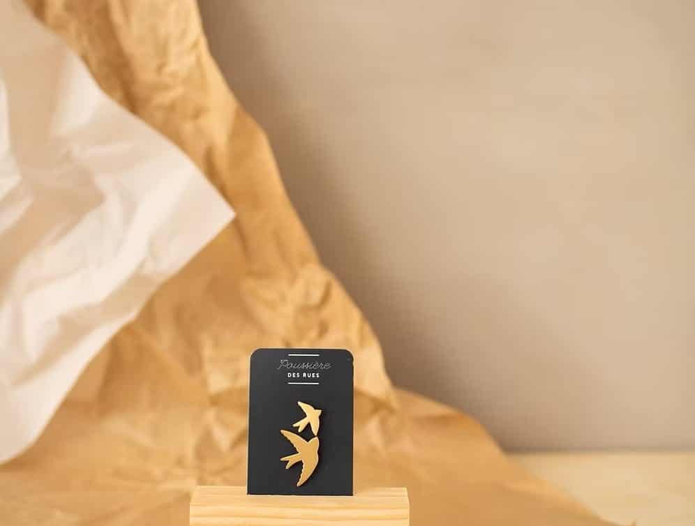 Ce Pin’s Duo hirondelles en laiton doré de Poussière des Rues est la touche lumineuse qui fait toute la différence. À la fois poétique et plein de caractère, il se glisse sur une veste, un tote bag ou une trousse pour y semer un brin de magie. Un petit bijou à offrir ou à s’offrir !