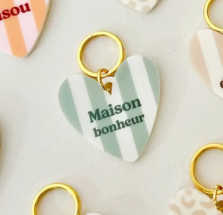 Porte-clé coeur – Maison bonheur est un accessoire en plexiglas avec son adorable message doux et poétique, fait à la main par Print Your Love.