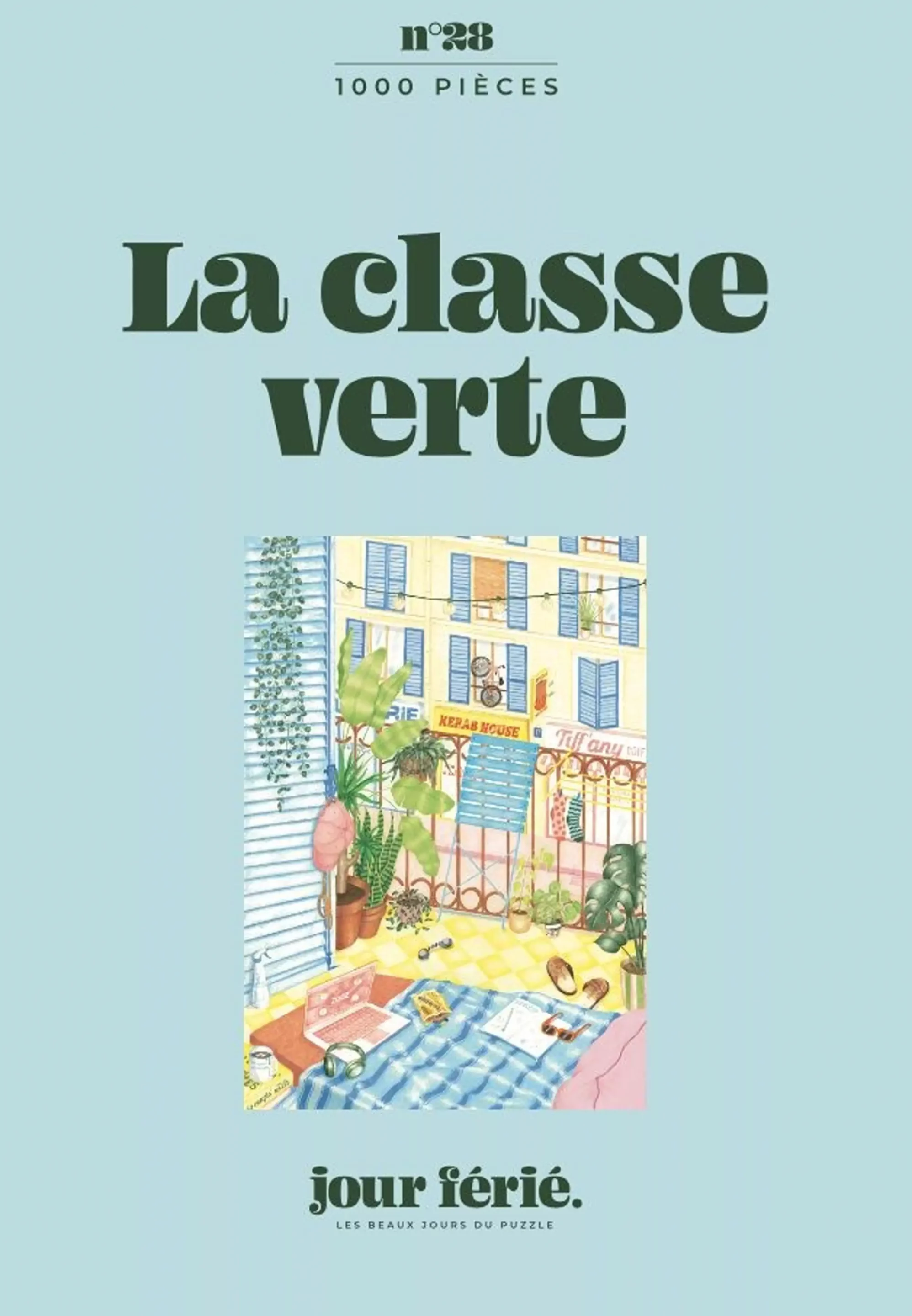 L’histoire du puzzle raconte : “Travailler a parfois un petit goût de vacances quand on reste chez soi, bercé·e par un rayon de soleil dans l’encablure de la fenêtre. La classe verte, c’est un 1000 pièces comme une ode au télétravail tel qu’on l’aime : au calme, biscuits à volonté et l’animal de compagnie à portée de câlin !”