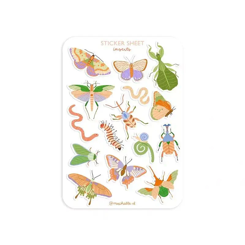 Avec Sticker A6 – Insects papillons apportez de la couleur et de la joie à votre journée ! Cette planche contient des autocollants prédécoupés de haute qualité, imprimés sur un PVC blanc résistant avec une luxueuse finition mate. Parfaits pour votre bullet journal, votre agenda ou toute autre création. Apportez une touche unique à vos notes, citations ou décorations et laissez libre cours à votre imagination !