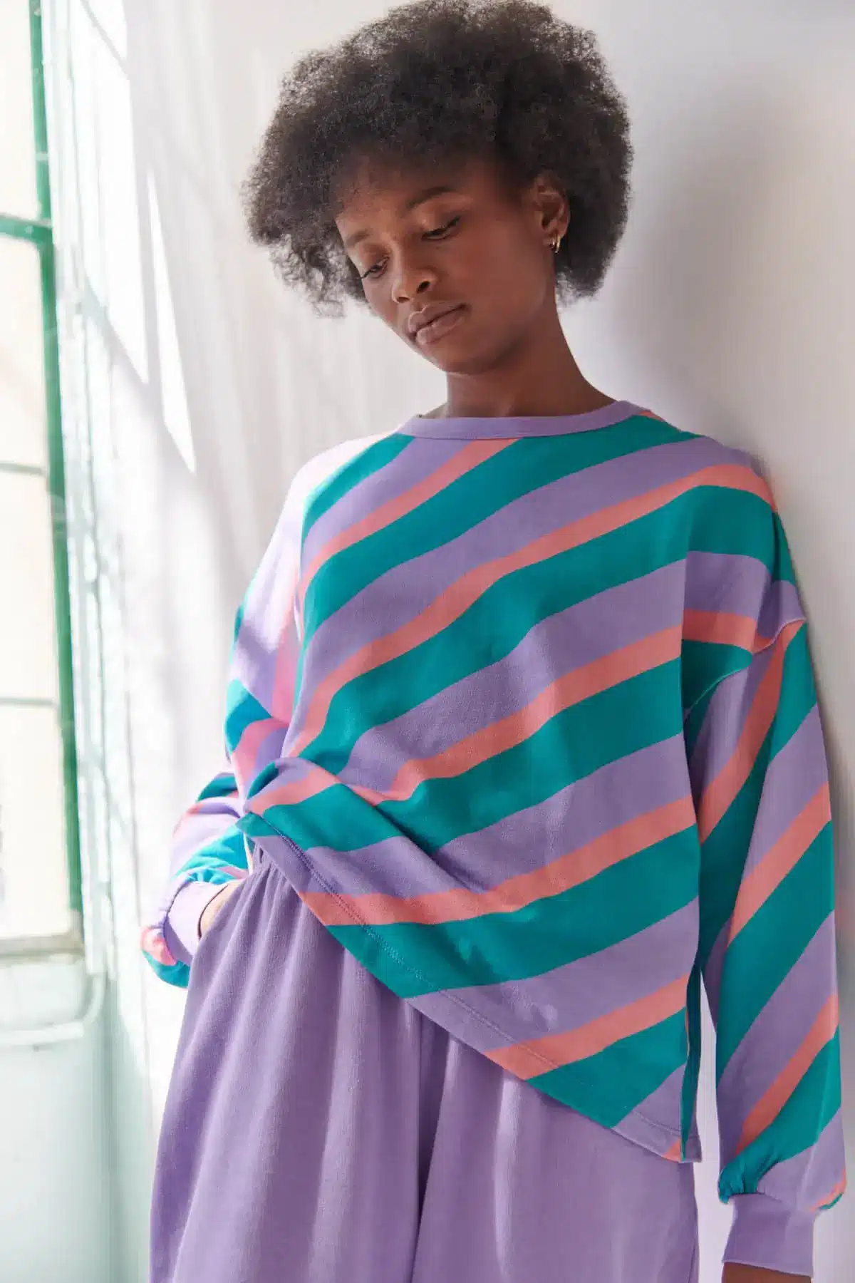 Le Sweat Flashback Violet est fluide, pas trop long, avec des épaules tombantes qui donnent ce tombé relax et stylé à la fois. Il est hyper confortable en 100% coton BIO tout doux, facile à vivre et tellement flatteur qu’on a envie de le porter tout le temps.