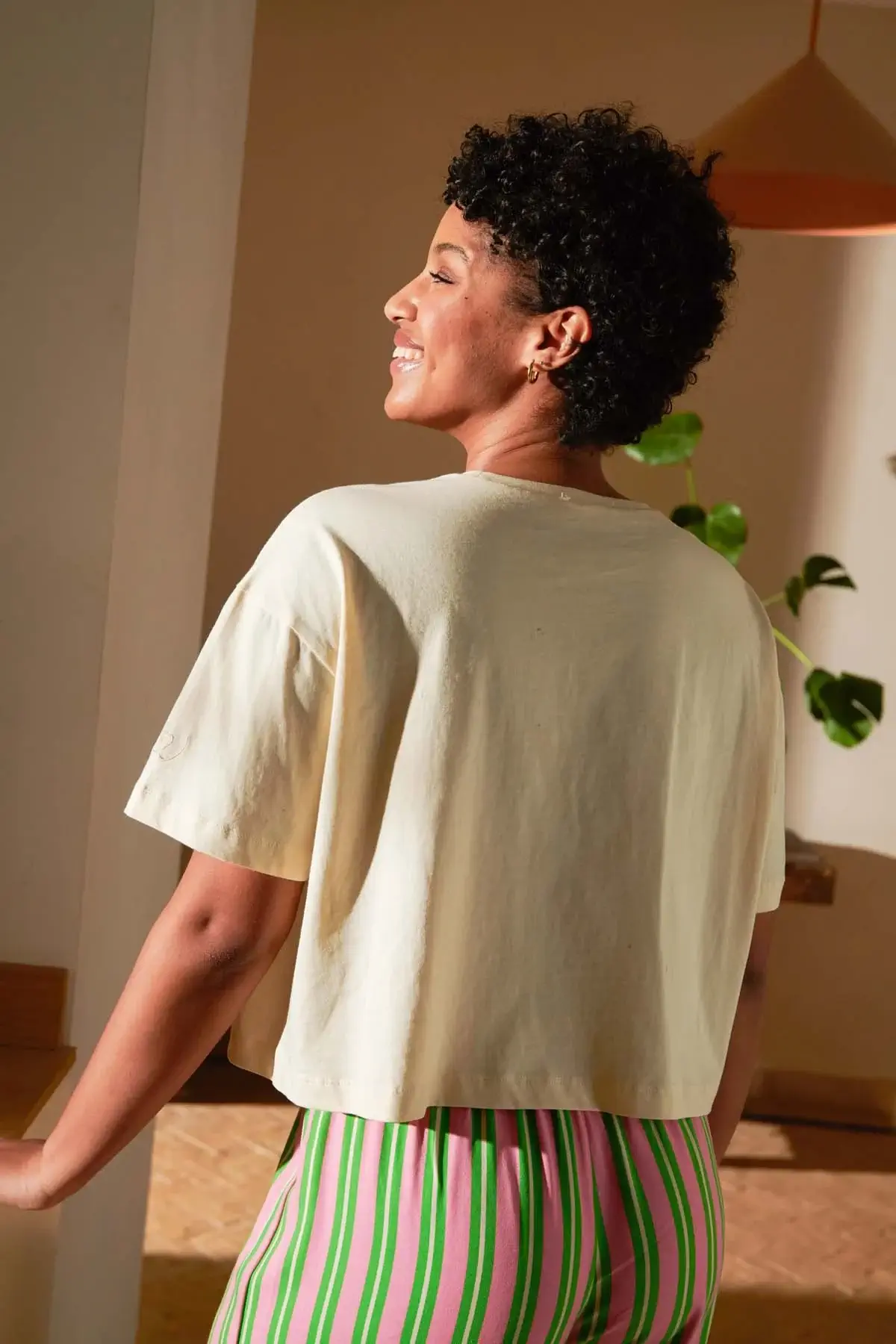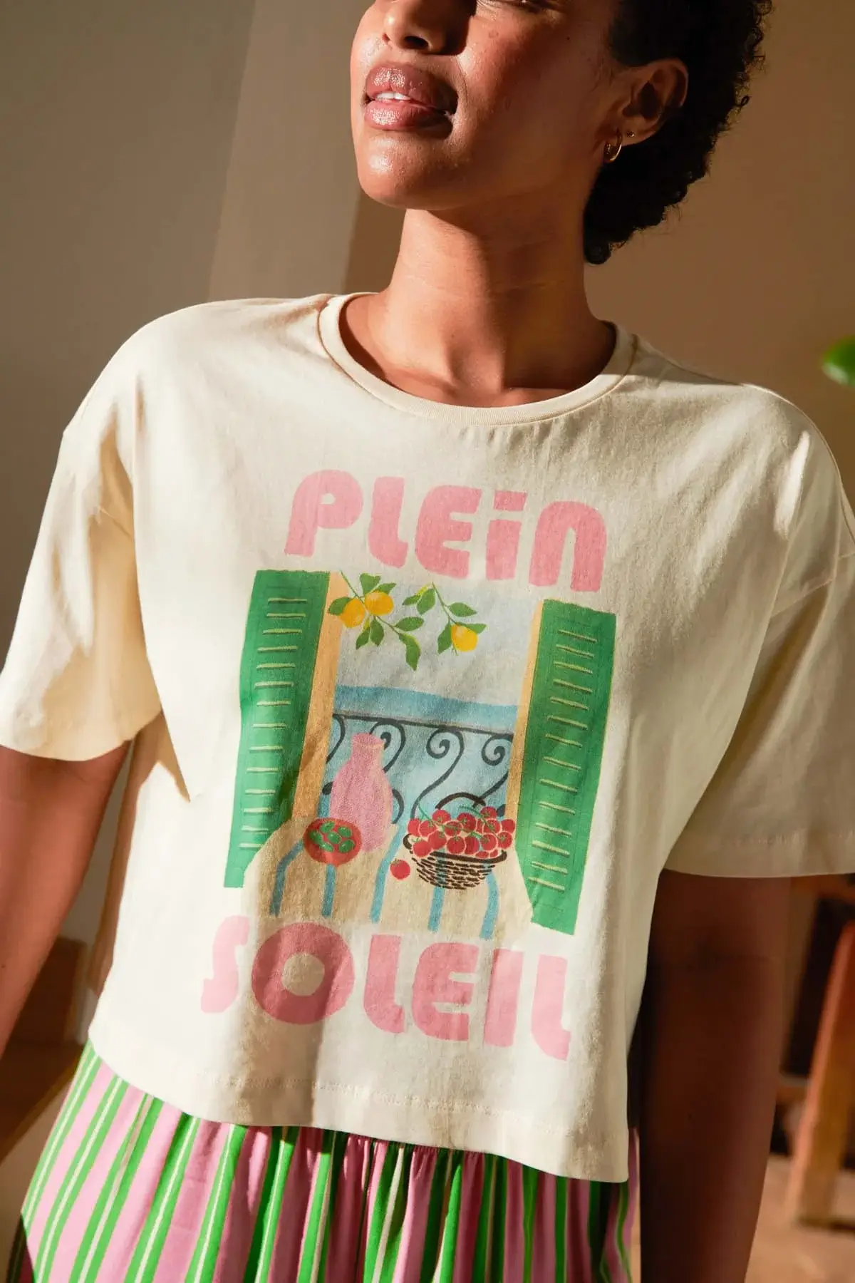 T-shirt – Plein Soleil c’est le t-shirt parfait ! La maille est confortable, agréable à porter toute la journée, et garde sa forme. La coupe, est pensée pour flatter sans mouler : un tombé naturel, des épaules bien placées, une longueur facile à associer.